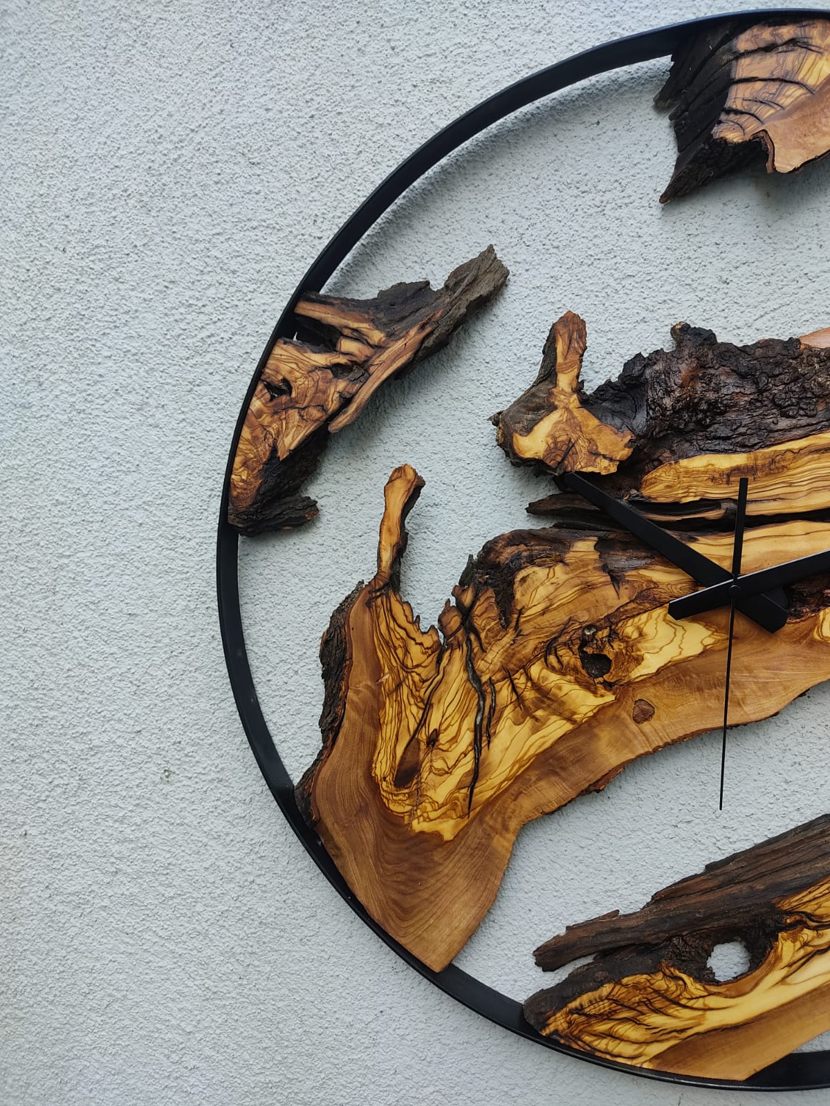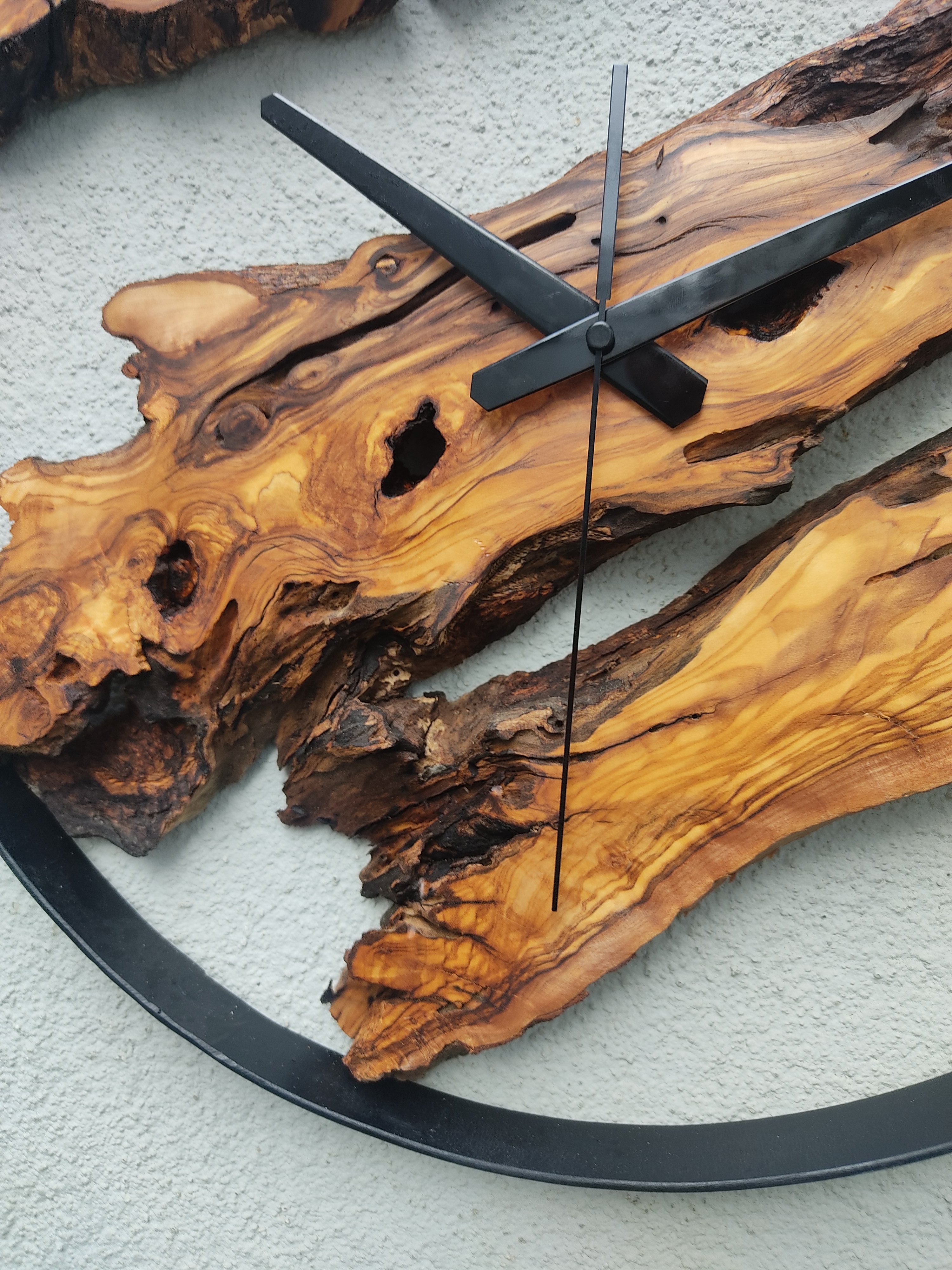 Olive trees are one of nature's most inspiring and timeless wonders. With lifespans spanning centuries, deep historical roots, and symbolic meanings, the olive tree is a symbol of immortality. Its endurance and symbolic depth throughout history give the olive tree a timeless beauty and wisdom that transcends generations. You can bring the immortality of the olive tree into your home or office, capturing its essence in time. Each clock and wood piece is unique, crafted to order, ensuring no two pieces are alike. The wood’s shape, grain, and color may vary from the picture, making it a one-of-a-kind creation. If you have specific requests or instructions about the wood/clock, please let us know. Whether you’re looking for a custom-designed clock for your wall or a unique gift, we’d be happy to create something special just for you.